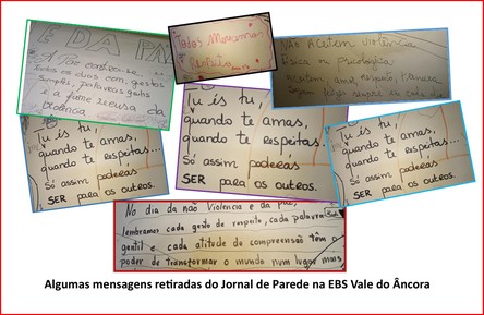 Na EBS de Caminha e do Vale do Ancora, os espaços exteriores às salas de aula (com a colaboração dos assistentes operacionais dos pavilhões) foram ornamentados com faixas com mensagens e pombas de papel em comemoração deste Dia.