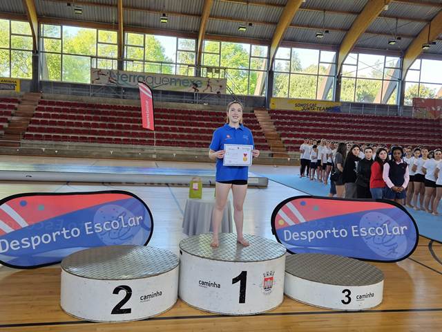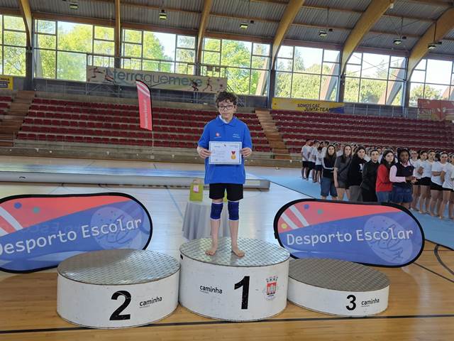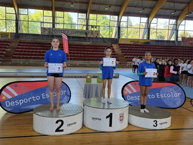No passado dia 17 de abril, o pavilhão municipal de Caminha recebeu o 3º encontro competitivo de ginástica do Distrito de Viana do Castelo. Esta prova contou com a participação das equipas do Desporto Escolar de Ginástica de Trampolins do nosso Agrupamento, e da EB da Correlhã, bem como as equipas de Ginástica Acrobática da EBS de Ponte da Barca e Ginástica de Grupo da EB de Castro.