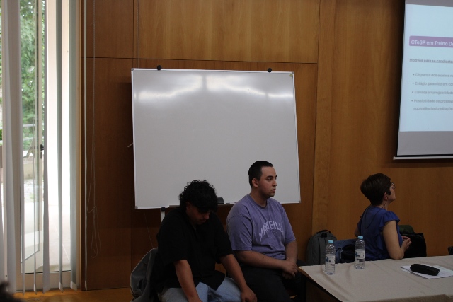 - os alunos Zacaria e Sandro, alunos finalistas, representando cada um dos Cursos Profissionais (Desporto e Informática).