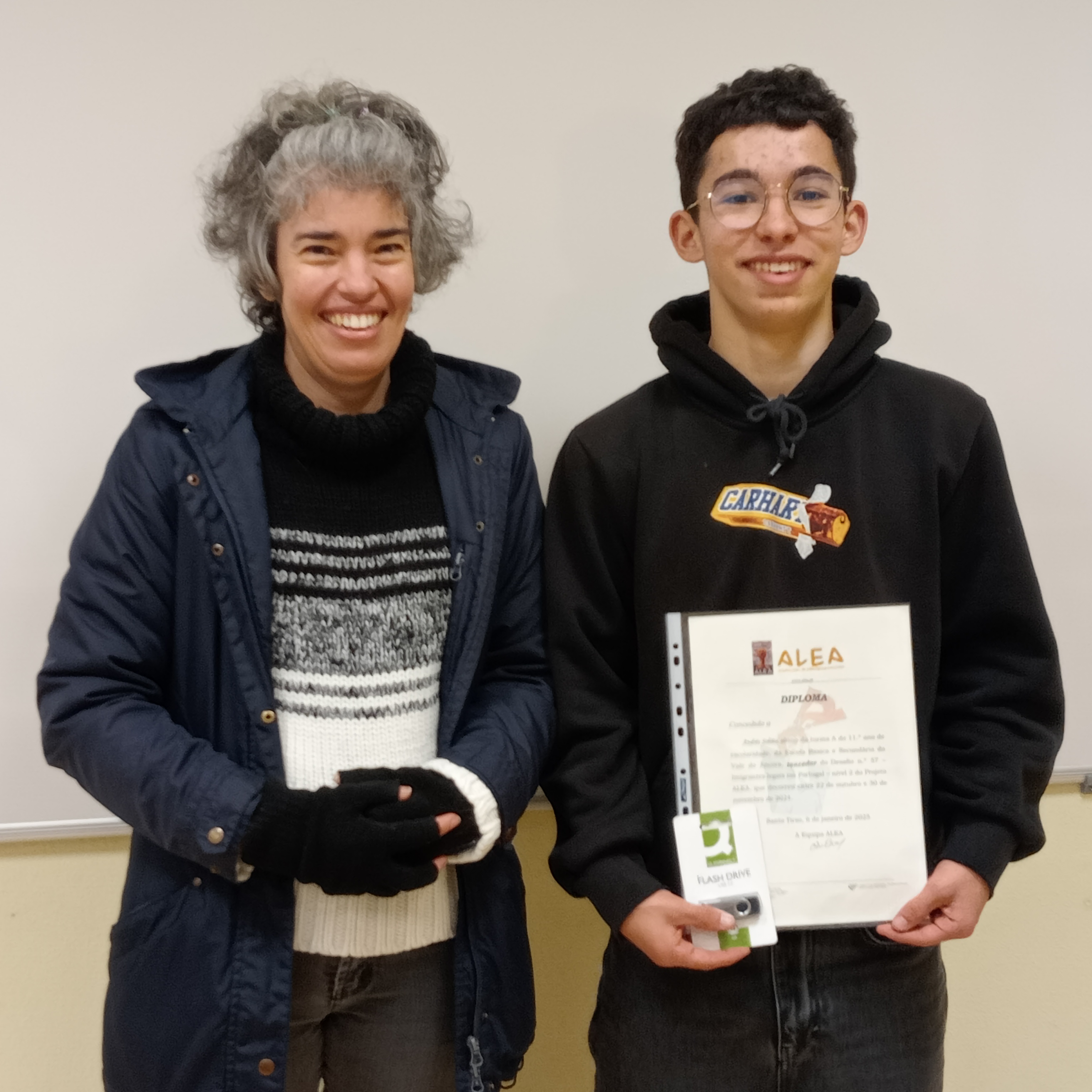 Andrés Soliño, aluno do 11.º A da Escola Básica e Secundária de Vale do Âncora, foi o grande vencedor do Desafio n.º 57 - Imigrantes legais em Portugal - nível 2, inerente ao projeto ALEA - Ação Local de Estatística Aplicada. O concurso, que decorreu entre 22 de outubro e 30 de novembro de 2024, foi organizado pela Escola Secundária Tomaz Pelayo em parceria com o Instituto Nacional de Estatística, IP. O projeto visa a elaboração e disponibilização de instrumentos de apoio ao ensino e à aprendizagem da Estatística relevante para a sociedade e os desafios do ALEA são problemas do dia a dia, baseados em notícias publicadas em órgãos de comunicação social. A revelação do vencedor do 1º Prémio foi feita no passado dia 20 de janeiro. Foi com muito orgulho que a professora de Matemática Sonia Lima assistiu à entrega do prémio ao seu aluno Andrés que está de parabéns pela originalidade da resolução face ao desafio proposto.