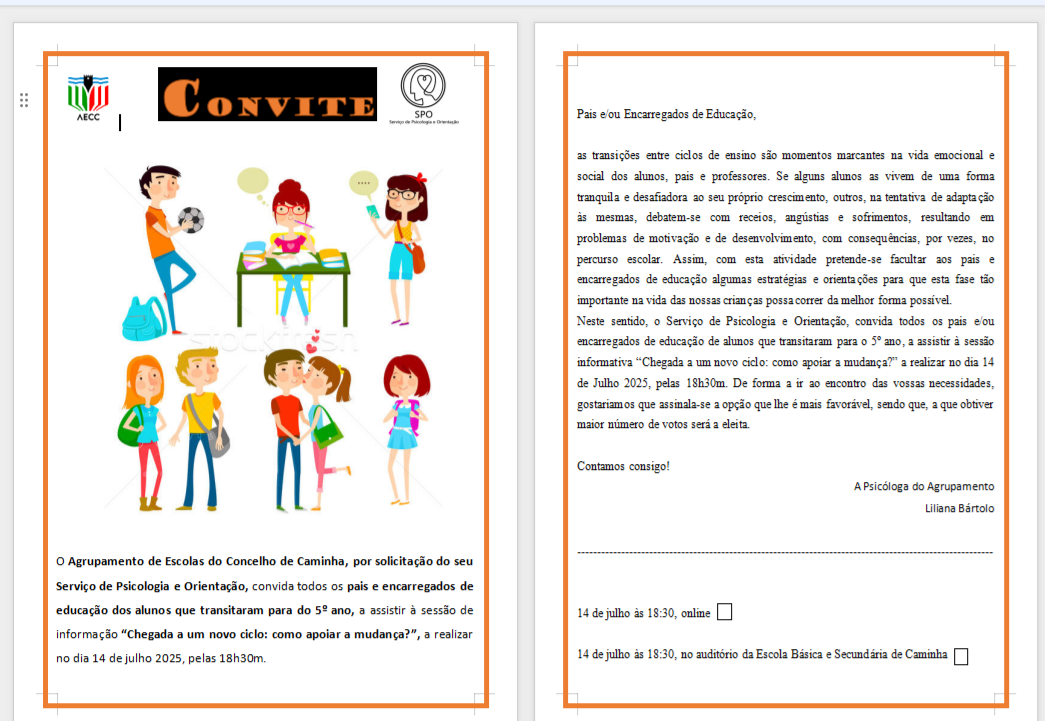 Sessão informativa "Chegada a um novo ciclo: como apoiar esta mudança?"