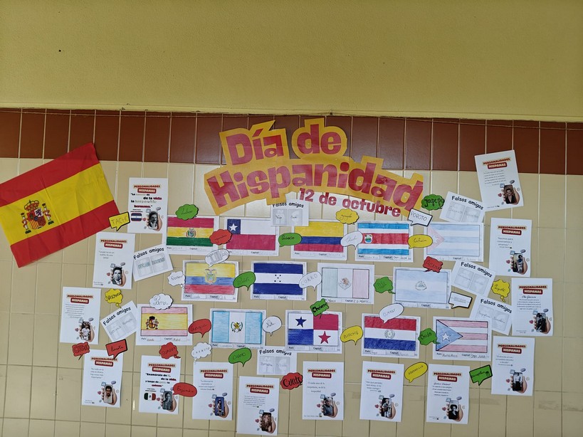 O grupo disciplinar de Espanhol invadiu os corredores das Escolas Básicas e Secundárias do nosso Agrupamento com cor, ritmo e sabores, numa autêntica viagem cultural para celebrar o mundo hispânico e o Día de Fiesta Nacional (12 de Outubro), também conhecido como Día de Hispanidad.