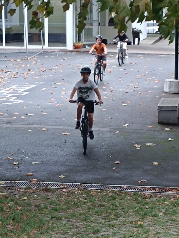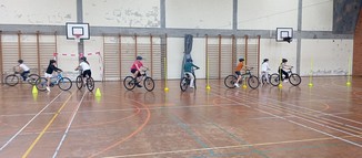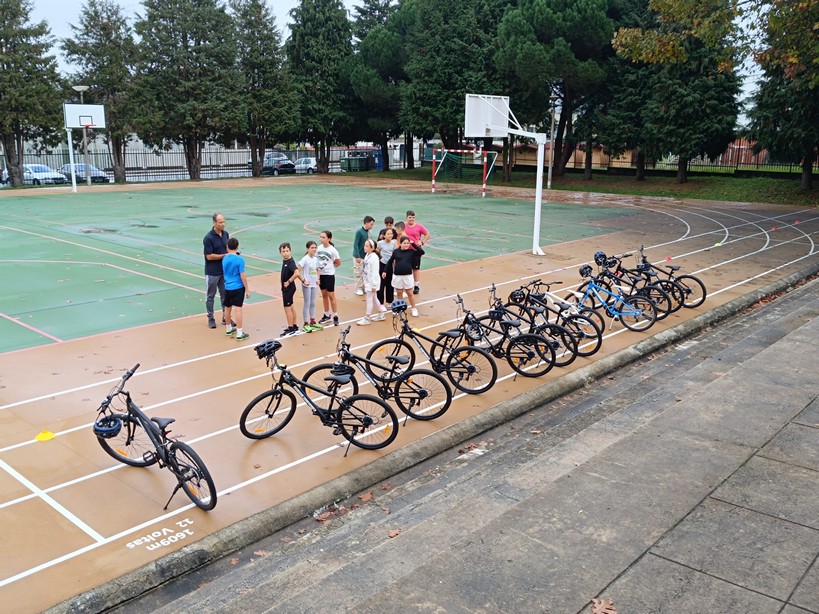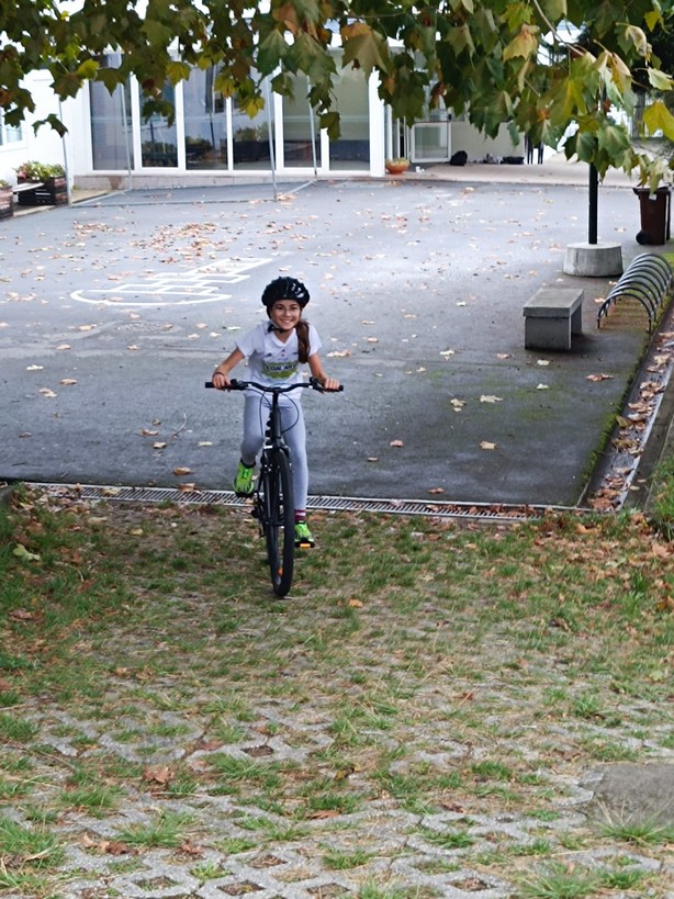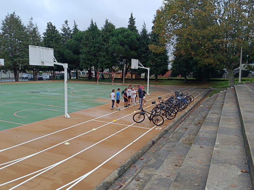 Num primeiro momento, os alunos foram desafiados a realizarem um circuito de habilidades com a bicicleta. De seguida, todos realizaram um pequeno duatlo, que é uma prova realizada em 3 fases: percurso de corrida, percurso de bicicleta e novo percurso de corrida.