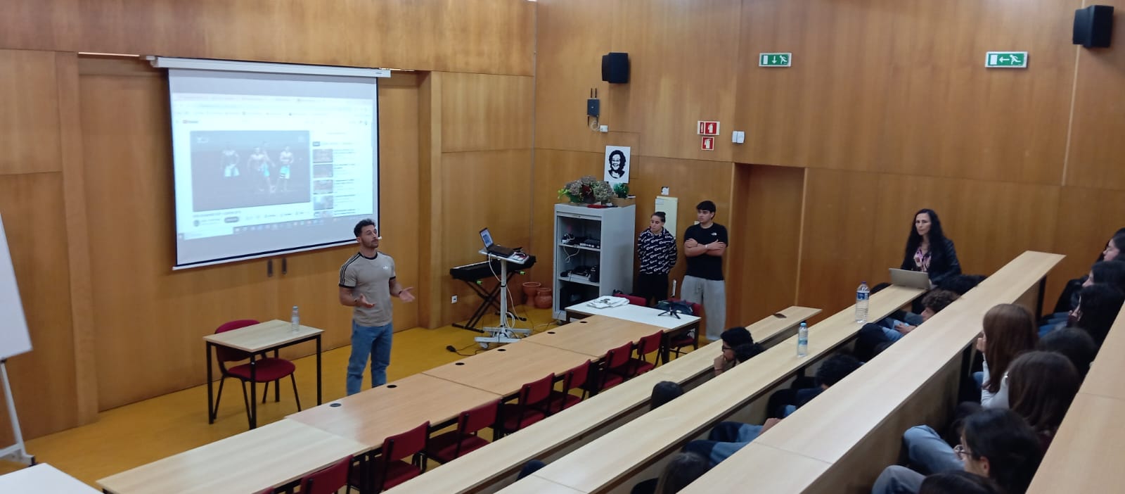 No âmbito da Prova de Aptidão Profissional desenvolvida pelos alunos Afonso Vasconcelos e Rita Vieira, do Curso Profissional de Técnico de Desporto, o campeão europeu Men's Physique, Rafael Bouça, esteve presente no Auditório da Biblioteca da EBS de Caminha para partilhar a sua experiência profissional e desportiva na área da musculação a nível nacional e internacional.