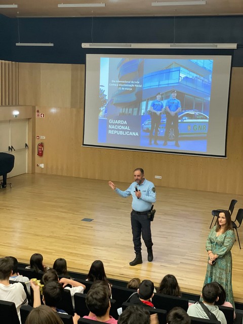A nossa escola promoveu recentemente uma intervenção conjunta do Serviço de Psicologia e Orientação (SPO) e do programa Escola Segura, dirigida aos alunos do 5.º e 6.º anos, subordinada ao tema “Sim à Diferença”.